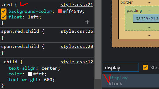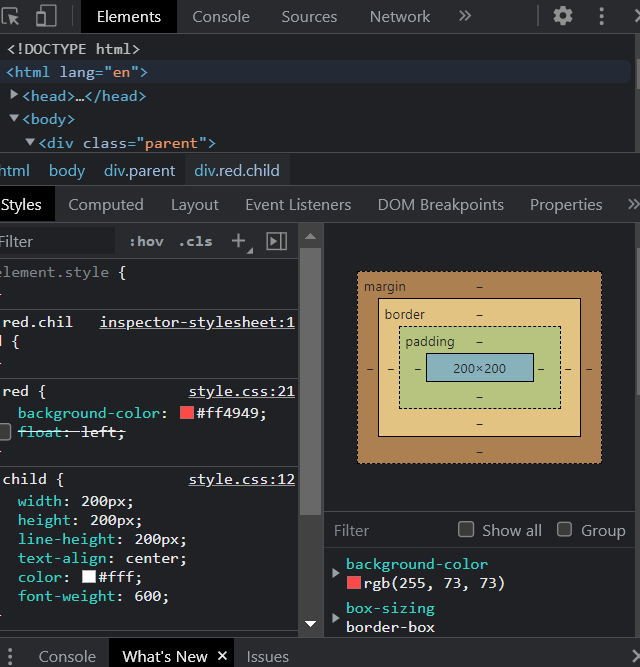 - .red에 float: left를 하니 밑에 있는 .orange가 사라진다. (.red 밑으로 들어갔기 때문이다)