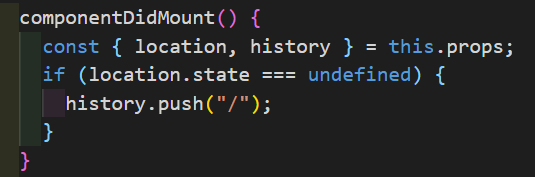 - 직접 URL을 입력했을 때 location의 state값이 비어있을 때만 활성화되고 이때 Home으로 이동하게 합니다.