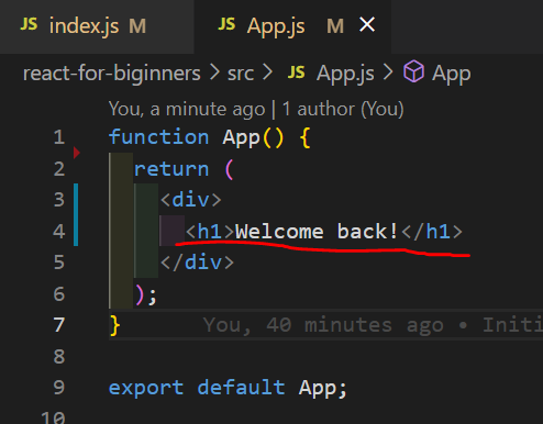 7. App.js에서 text를 Welcome back! 으로 수정하고 결과 확인하기