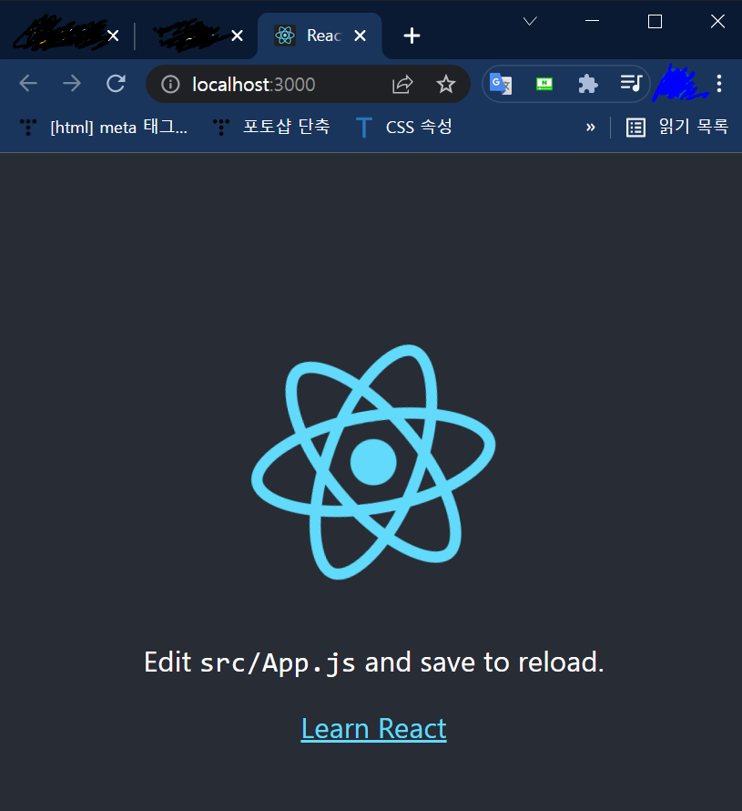 - create-react-app을 사용해서 어플리케이션을 만들었을 때 초기버전이 브라우저에서 실행됩니다.